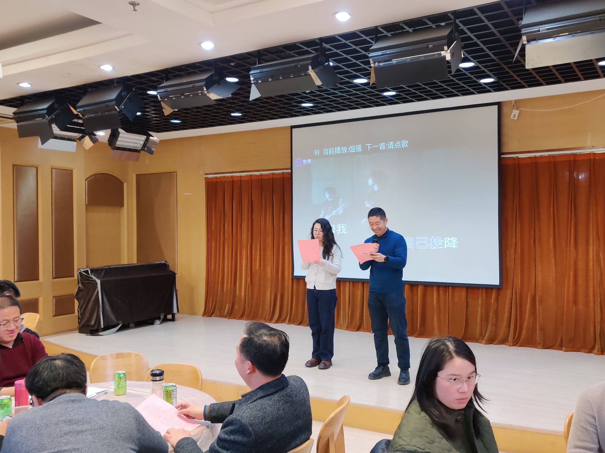 随后的迎新春联欢环节现场气氛热烈,充满欢声笑语。教职工们以歌唱、朗诵等形式展示才艺,充分展现了学院教职工的热情与活力。活动还设置了激动人心的抽奖环节,为整个联欢活动增添了更多的欢庆氛围。