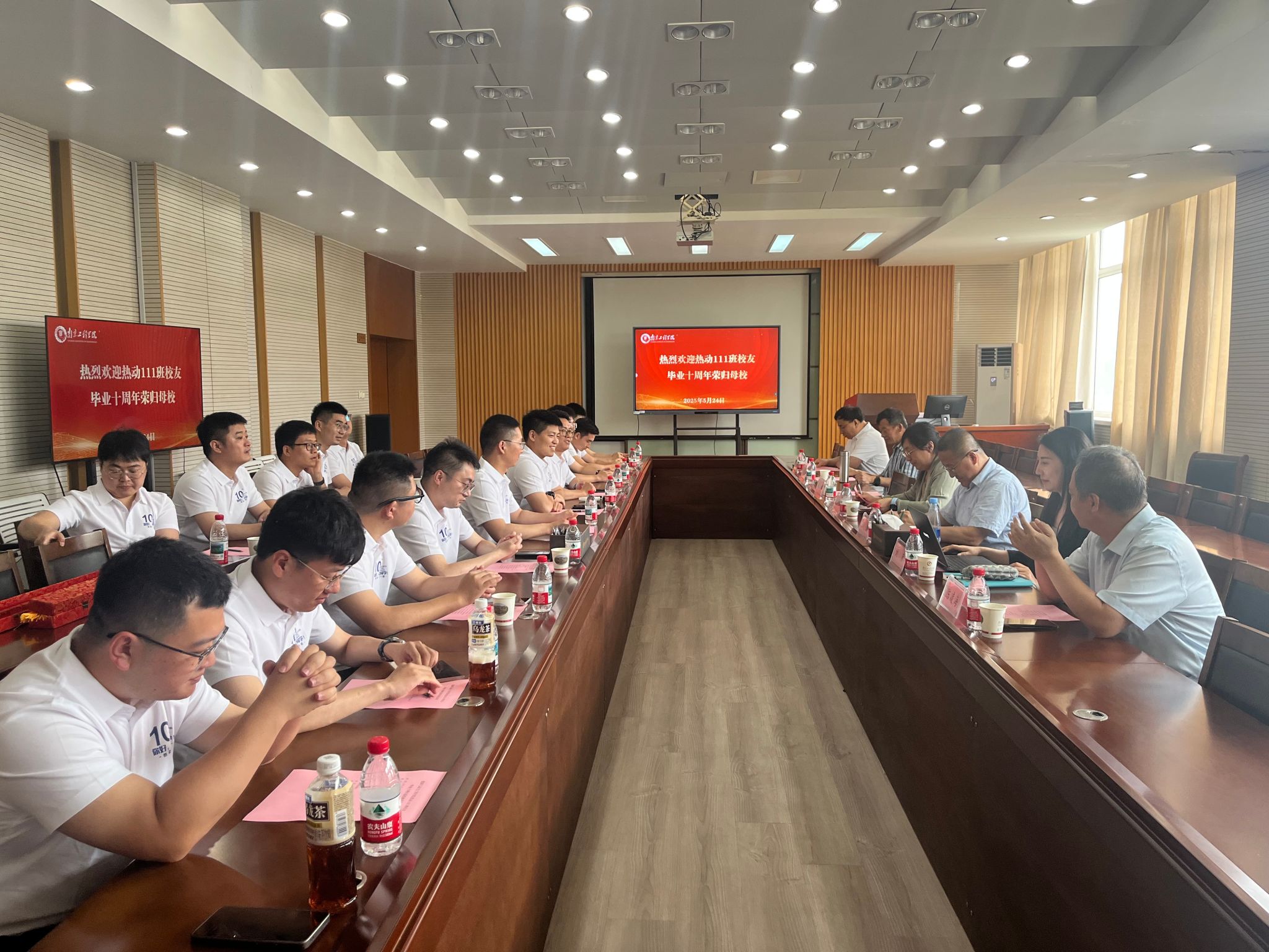 历尽千帆,归来仍是少年。5月24日,yl23411永利集团官网热动111班的15位校友从五湖四海重返母校,欢聚一堂,共赴毕业十周年的美好约定。大家重温青春记忆,畅叙同窗情谊,再次聆听师长教诲,感受熟悉而温馨的校园氛围。该院党委书记徐艳、副院长薛锐(主持工作)、副院长朱正林、党委副书记刘彦、班主任王顺及该院教师代表等出席了此次活动。