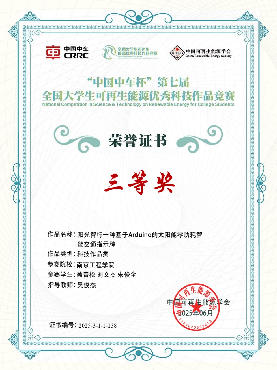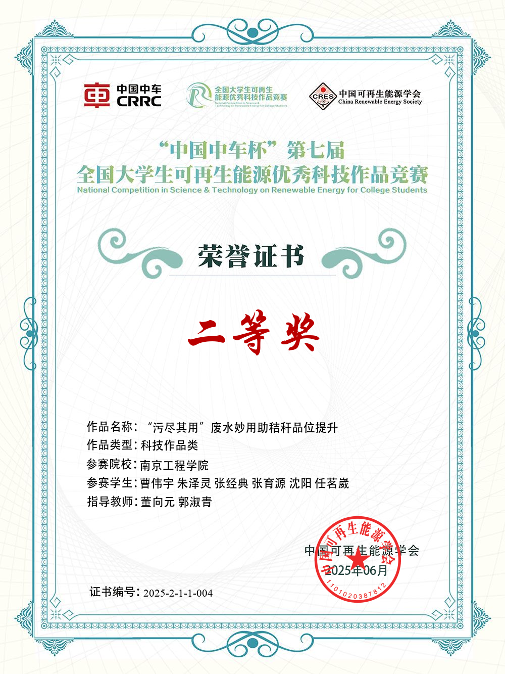 近日,由中国可再生能源学会主办的中国中车杯第七届全国大学生可再生能源优秀科技作品竞赛决赛在盐城落下帷幕。我校yl23411永利集团官网2支参赛团队经过激烈角逐脱颖而出,其中,作品《“污尽其用”——废水妙用助秸秆品位提升》(参赛学生:曹伟宇等,指导教师:董向元、郭淑青)荣获全国二等奖,作品《阳光智行——一种基于Arduino的太阳能零功耗智能交通指示牌》(参赛学生:盖青松,等,指导教师:吴俊杰)荣获全国三等奖。
