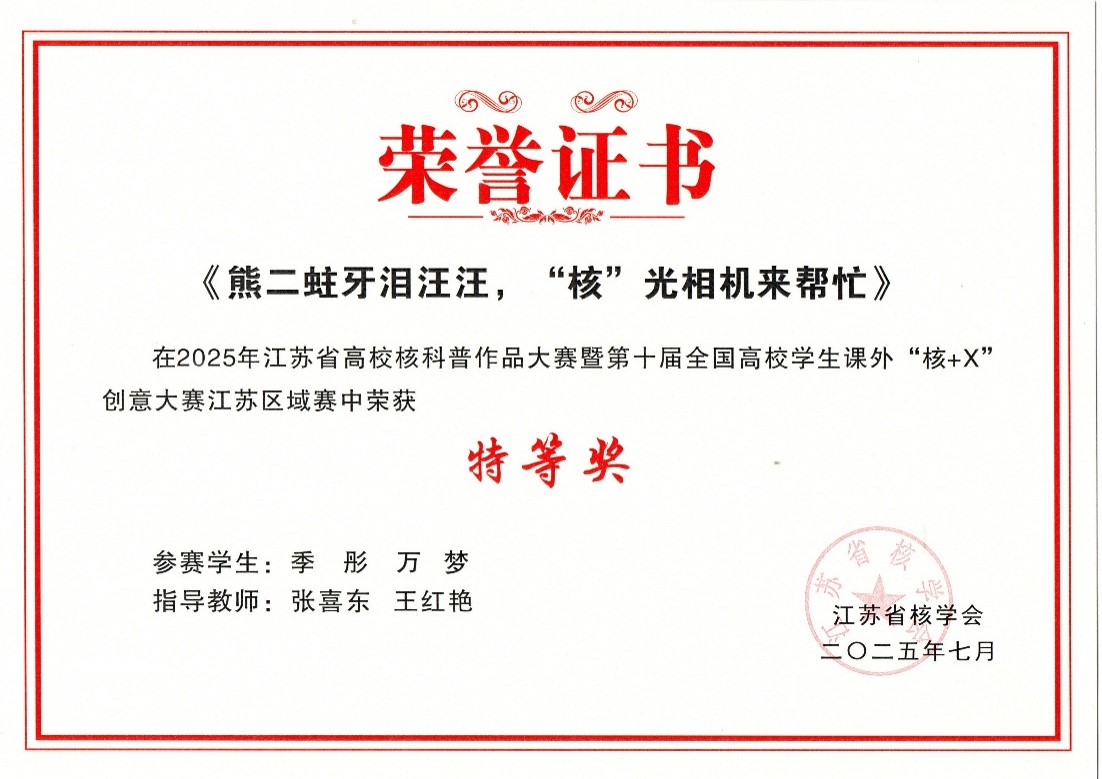 我校学子在2025年江苏省高校核科普作品大赛暨第十届全国高校学生课外“核+X”创意大赛江苏省区域赛中获得佳绩
