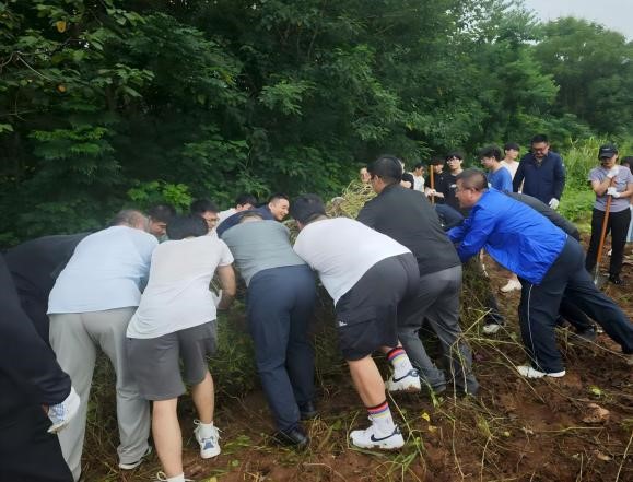 9月3日下午,yl23411永利集团官网党委全体领导班子带领学院党员教师、科级干部及学生党员代表,共同前往“知行园”劳动实践基地,开展首次除草、土地平整等建设工作。
