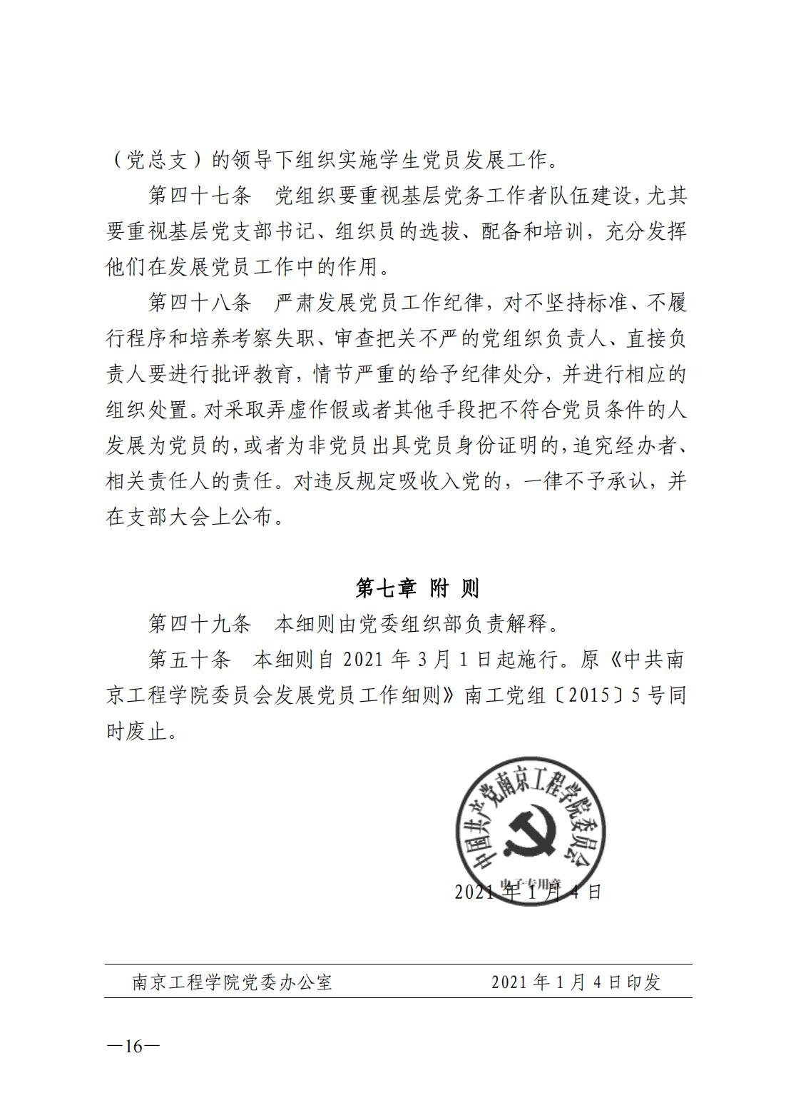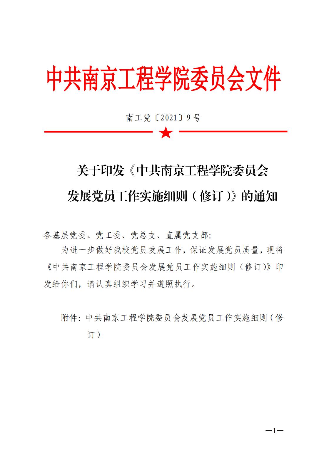 关于印发《中共南京工程学院委员会发展党员工作实施细则(修订)》的通知