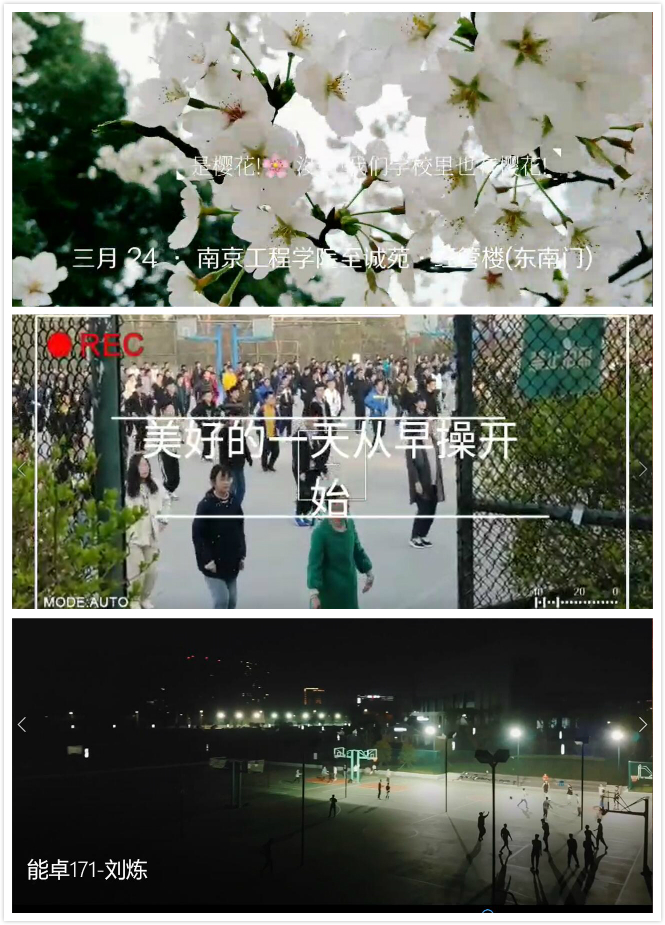 活动得到了各团支部的积极响应,同学们围绕“吾是青年”这一主题,充分展示自己的创意和创作才能,通过学院学生会QQ主页君踊跃投稿,将各具特色的VLOG视频呈现给大家。有的同学将一天的时光浓缩,用快节奏的剪辑带领大家感受大学生活的丰富多彩;有的则以航拍的形式全方位展现夜幕中的南工程。五十余份视频作品表达着当代青年在校园学习、社会实践、情感交往、生活体验等方面的感悟与思考。
