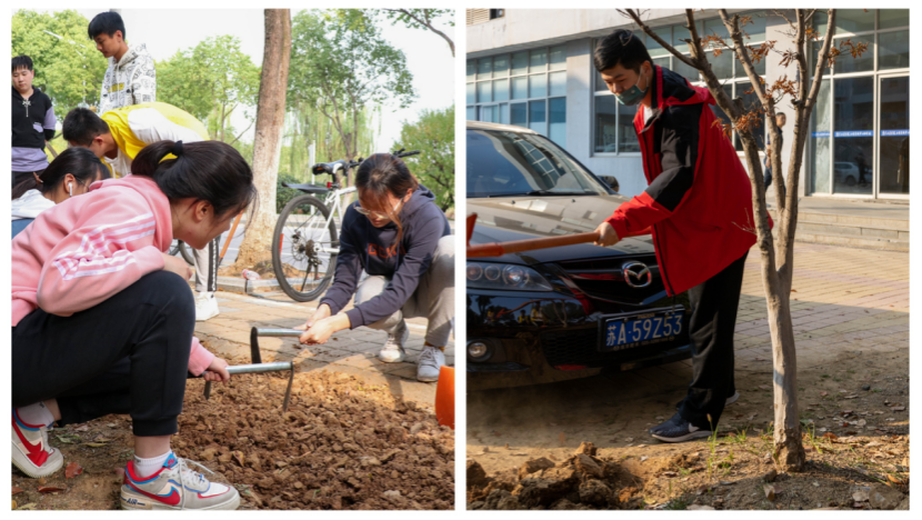 为丰富学生的业余生活,放松精神、减缓疲劳,3月中旬,学院结合植树节开展种植树苗活动。只见能动学子挥动工具,分工合作,清捡杂物,清除杂草,为植物浇水施肥。大家以高度的热情、饱满的干劲融入到活动中,不少同学大汗淋漓,干的热火朝天、不亦乐乎。虽然参加活动的同学们的鞋子、身上都沾满了泥土,但大家表示此次活动很有意义,既美化了环境,又感受到了劳动的快乐。