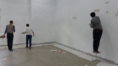 此前,工程实践中心9号楼一楼办公室内墙皮脱落严重,文件档杂物搁置较多。针对这一情况,从27日起,学生会各个部门按照预先分配的任务,各司其职,从擦洗桌椅到整理文件档案再到粉刷墙壁,翻新工作有条不紊的进行着。经过两天热火朝天的工作,该楼内部办公区域已呈现出崭新的面貌——室内光线明亮,一尘不染,桌椅摆放整齐规范,文件陈列清晰有序,细心的同学们还在各办公室内摆放了盆栽,整个办公室焕然一新。