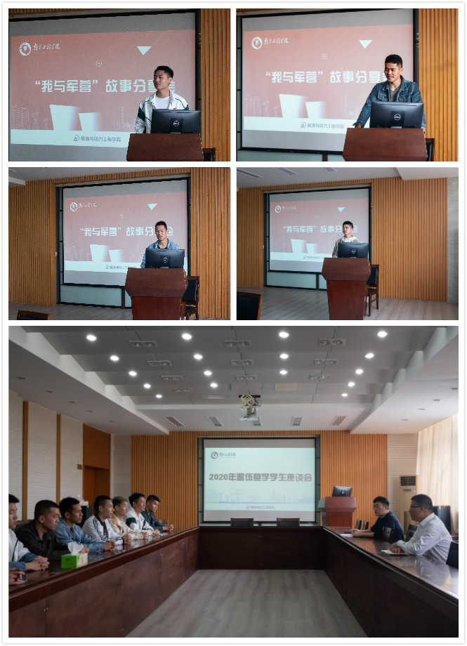 2020年退伍复学学生代表制冷171陈天祥、热自181项国梁、热自191闫浩楠以及能动201赵智四名同学为学院有入伍意向的同学们作“我与军营”军旅故事分享。四位同学分别从大学生人武政策、军营生活、复学考研与就业等不同角度,结合自身经历向同学们进行分享。项国梁同学曾服役于陆军某部,驻扎在世界屋脊——西藏,他为同学们讲述了雪域高原不一样的军旅生活,生动阐述了当代人民子弟兵扎根雪域高原,保家卫国的爱国精神;闫浩楠同学介绍了武警部队的基本情况、工作内容,讲述了自己的入伍心路历程;赵智同学则分享了自己武警特战的特殊训练经历,讲述了自己通过层层选拔成为一名特战队员的精彩故事;作为一名即将毕业的大四退伍同学,陈国祥同学重点就退伍同学的就业与考研选择进行讲解,特别提到了“退伍士兵专项计划”“退伍士兵专项岗位”等优惠政策,增强了在场同学们的入伍信心。