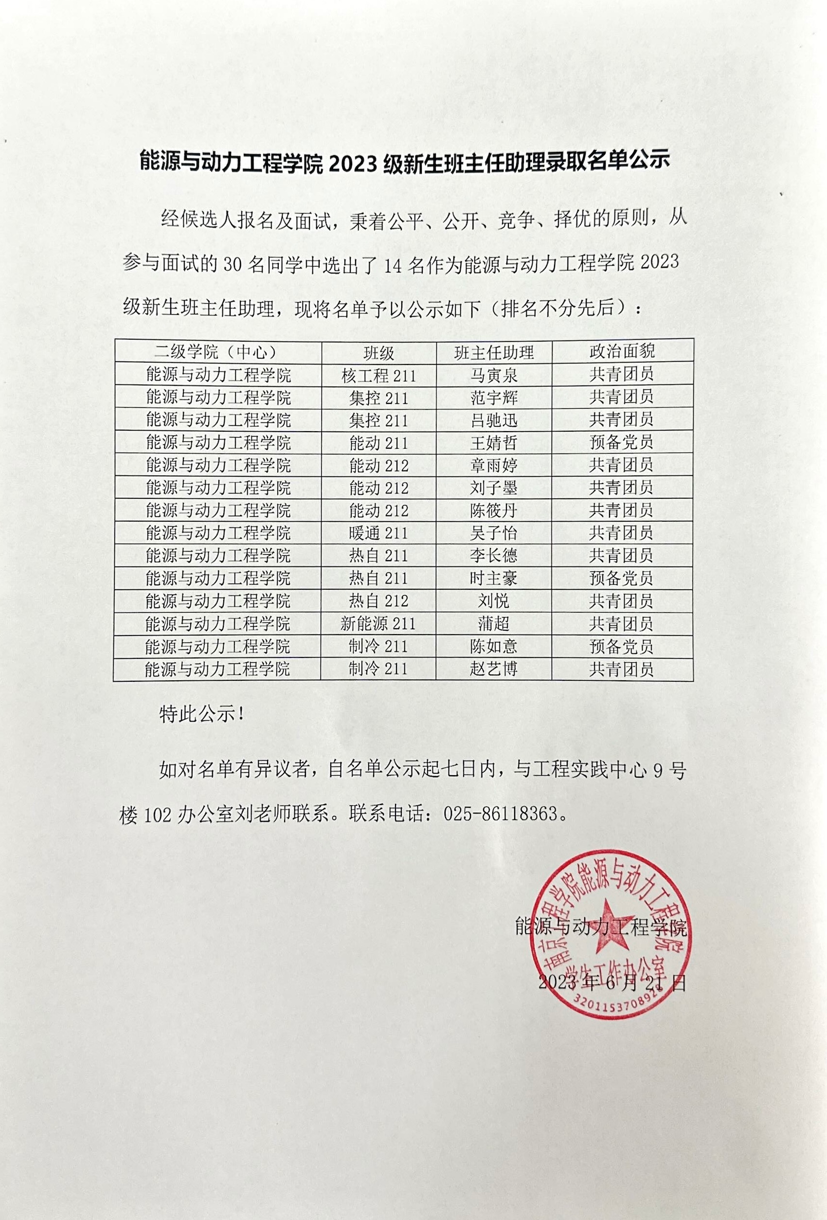 yl23411永利集团官网2023级新生班主任助理录取名单公示