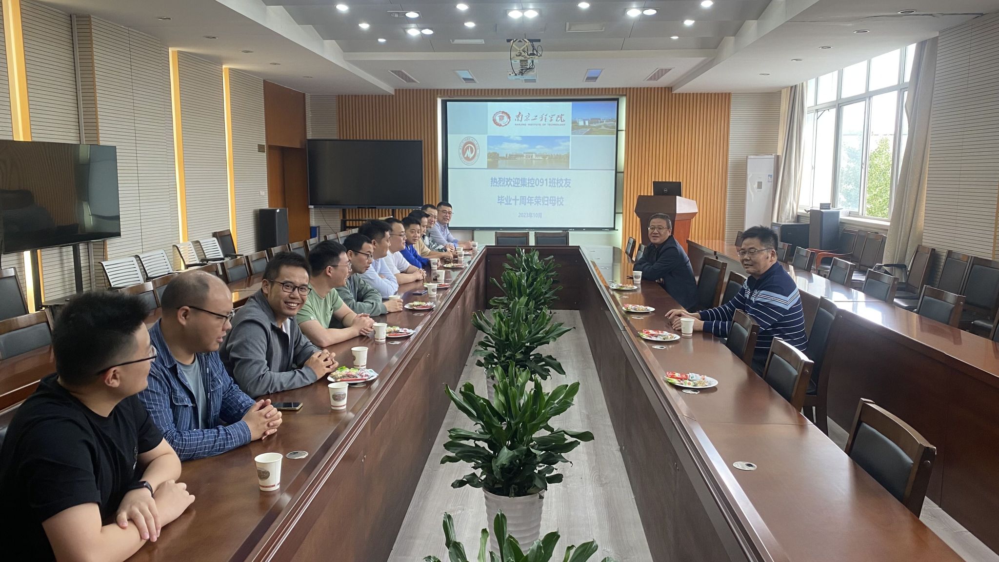 9月10日,yl23411永利集团官网集控091班二十余位来自五湖四海的校友们怀揣着对母校、老师、同学的浓浓深情齐聚一堂举办毕业十周年返校活动,并在工程实践中心9号楼三楼会议室召开座谈会。学院党委副书记朱正林、副院长薛锐参加了此次活动。