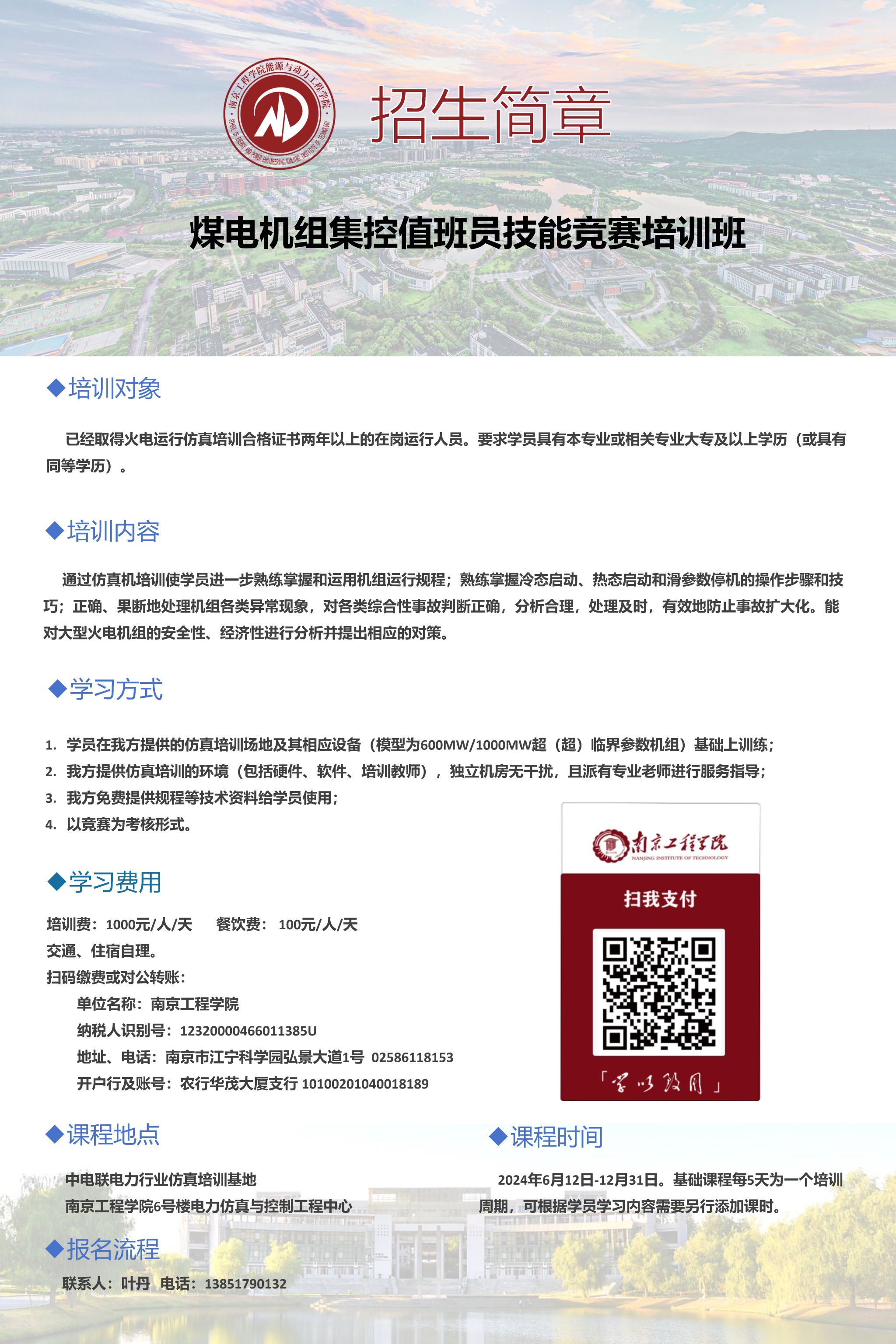 招生简章-煤电机组集控值班员技能竞赛培训班